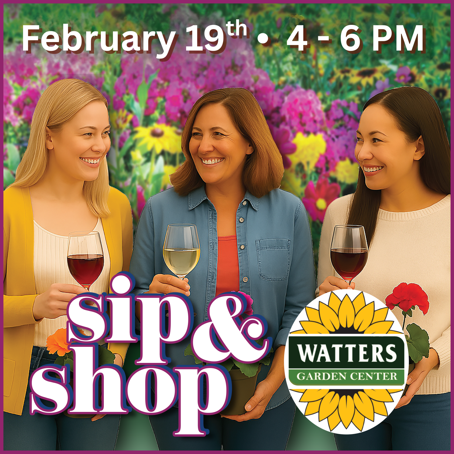 Join us at Watters Garden Center for a special Early Spring Sip & Shop designed for local gardeners, friends, and anyone ready to embrace the fresh energy of the new season! This event is specifically crafted to help you relax in the gardens and get a head start on your spring planting goals.