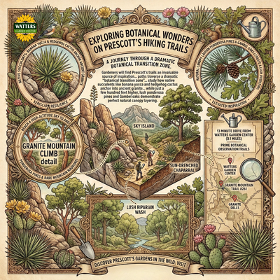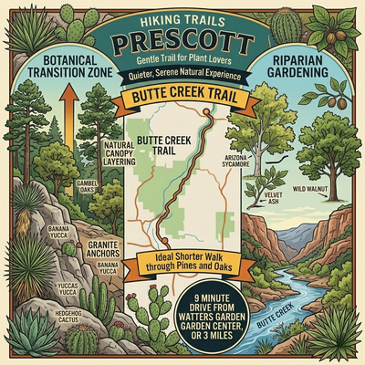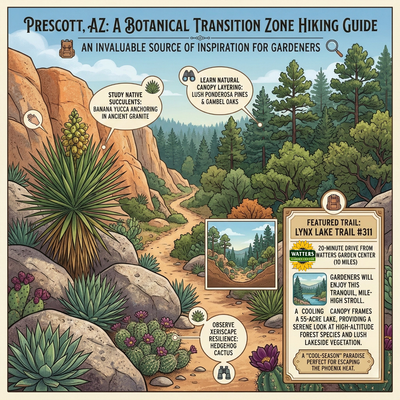 Gardeners will find Prescott's trails to be an invaluable source of inspiration, as the paths traverse a dramatic "botanical transition zone" where they can study how native succulents like banana yucca and hedgehog cactus anchor into ancient granite, while just a few hundred feet higher, lush ponderosa pines and Gambel oaks demonstrate perfect natural canopy layering.