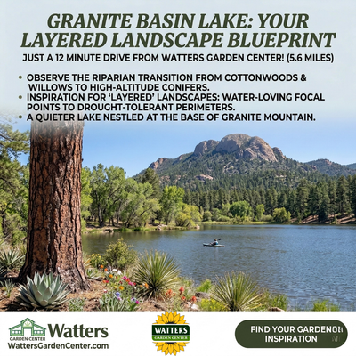 Nestled at the base of Granite Mountain, this quieter lake is a hidden gem for observing the transition from Riparian Cottonwoods and willows to high-altitude conifers. It provides excellent inspiration for creating 'layered' landscapes that move from water-loving focal points to drought-tolerant perimeters.