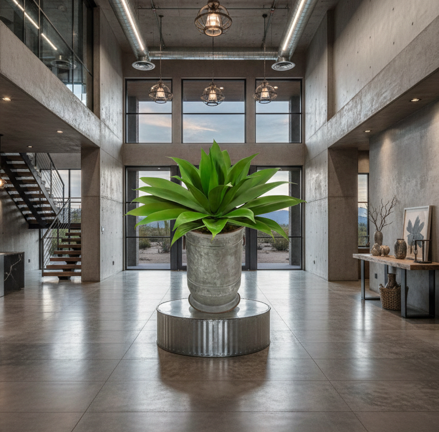 Agave Succulent Faux Plant in Vintage Metal Planter 26”