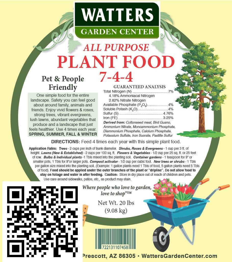 WATTERS 7-4-4 ALL PURPOSE PLANT FOOD 20lb