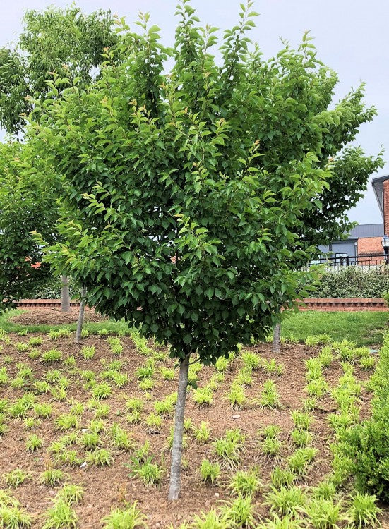 Kwanzan offers a vase-shaped growth habit, adding an elegant vertical element to your landscape. Its bronze-tinged new foliage matures to a deep green, providing a lovely backdrop for other plants. And in autumn, the leaves turn a golden bronze, offering a final flourish of color before winter.