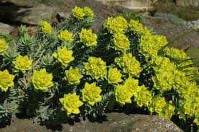 Known for its unique architectural form and striking foliage, Gopher Plant (Euphorbia rigida) is an excellent choice for zones 7 and 8. This drought-tolerant perennial forms a tidy, mounding shrub of fleshy, blue-green leaves arranged in a spiral pattern, reaching up to 2 feet tall and 3 feet wide. In late winter or early spring, it puts on a spectacular display with clusters of chartreuse-yellow flowers at the stem tips. As the name suggests, many gardeners find that Gopher Plant helps deter gophers, and it is also highly deer-resistant due to its toxic milky sap.