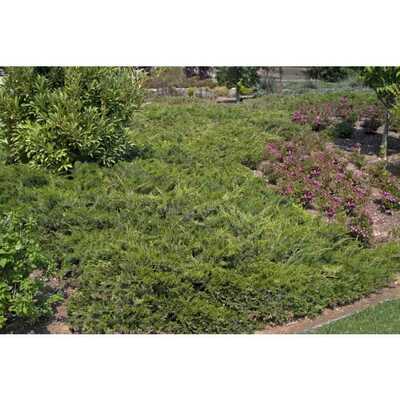 A low-spreading evergreen conifer, typically growing only one to two feet tall but spreading a good six to eight feet wide, creating a lush, carpet-like covering. Its soft, scale-like needles are a lovely blue-green color that provides year-round interest and a cooling touch to the landscape. This juniper is known for its dense, mat-forming habit, making it excellent for suppressing weeds and adding a touch of rugged beauty.