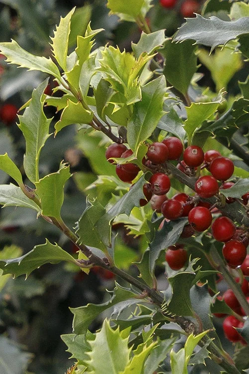 Bring a touch of magic to your garden with the 'Magical Amore' Holly. This compact, evergreen shrub is a showstopper, providing year-round beauty with its deep green, glossy leaves and an abundant display of bright red berries that hold on all winter. It grows to a tidy size of 5 to 6 feet tall and wide, making it perfect for foundation plantings, low hedges, or as a stand-alone focal point in Zones 7 and 8.