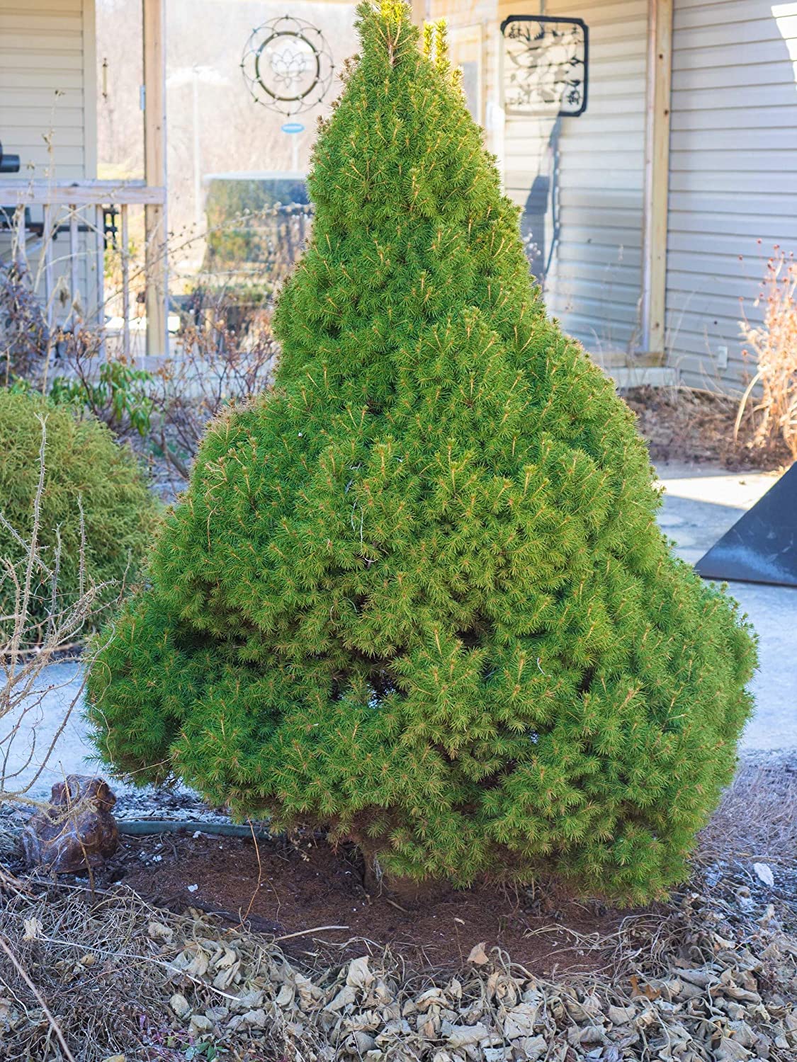 The Alberta Spruce, with its tight, conical shape and soft, bright green needles, brings a touch of formal elegance to any landscape. It's a slow grower, making it ideal for those who appreciate a neat, tidy appearance without constant pruning.