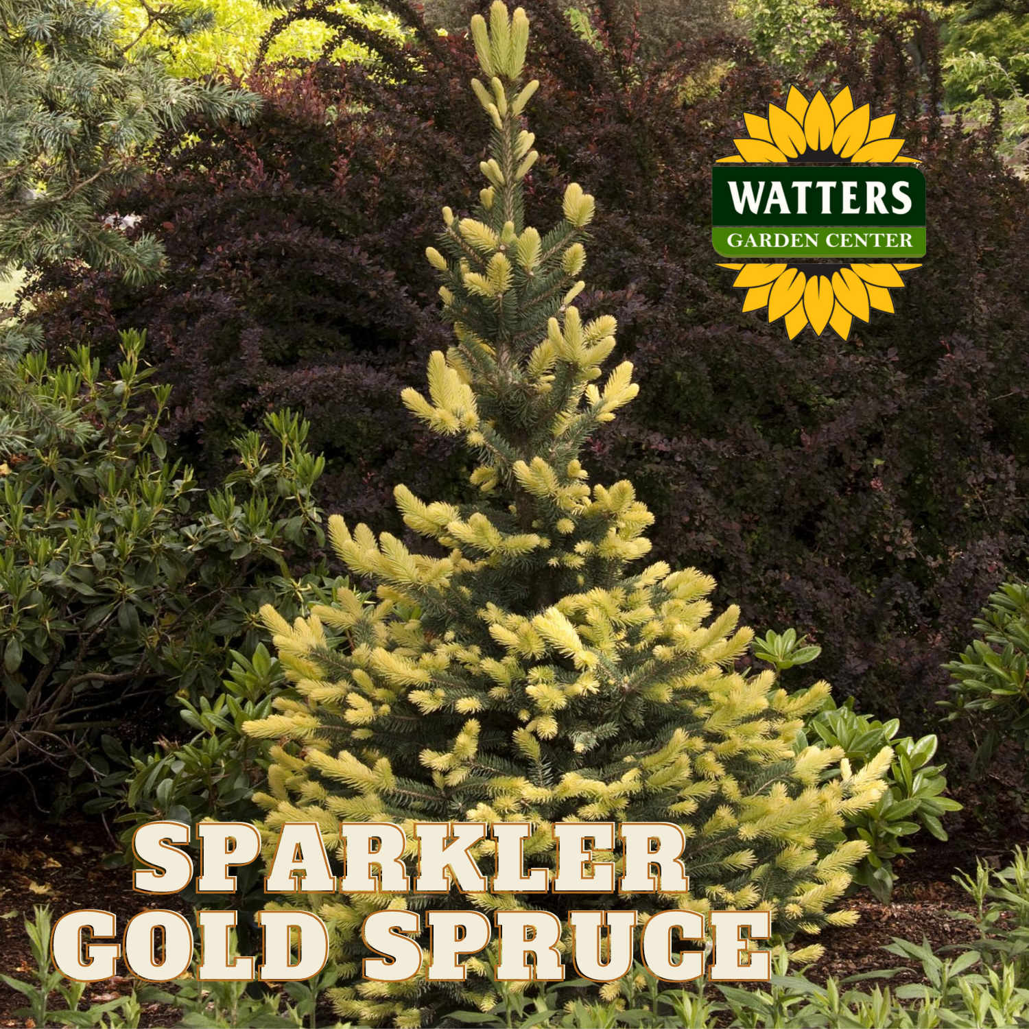 #SparklerGoldSpruce #GoldenConifers #LandscapeSpecimens #WattersGardenCenter #EvergreenBeauty