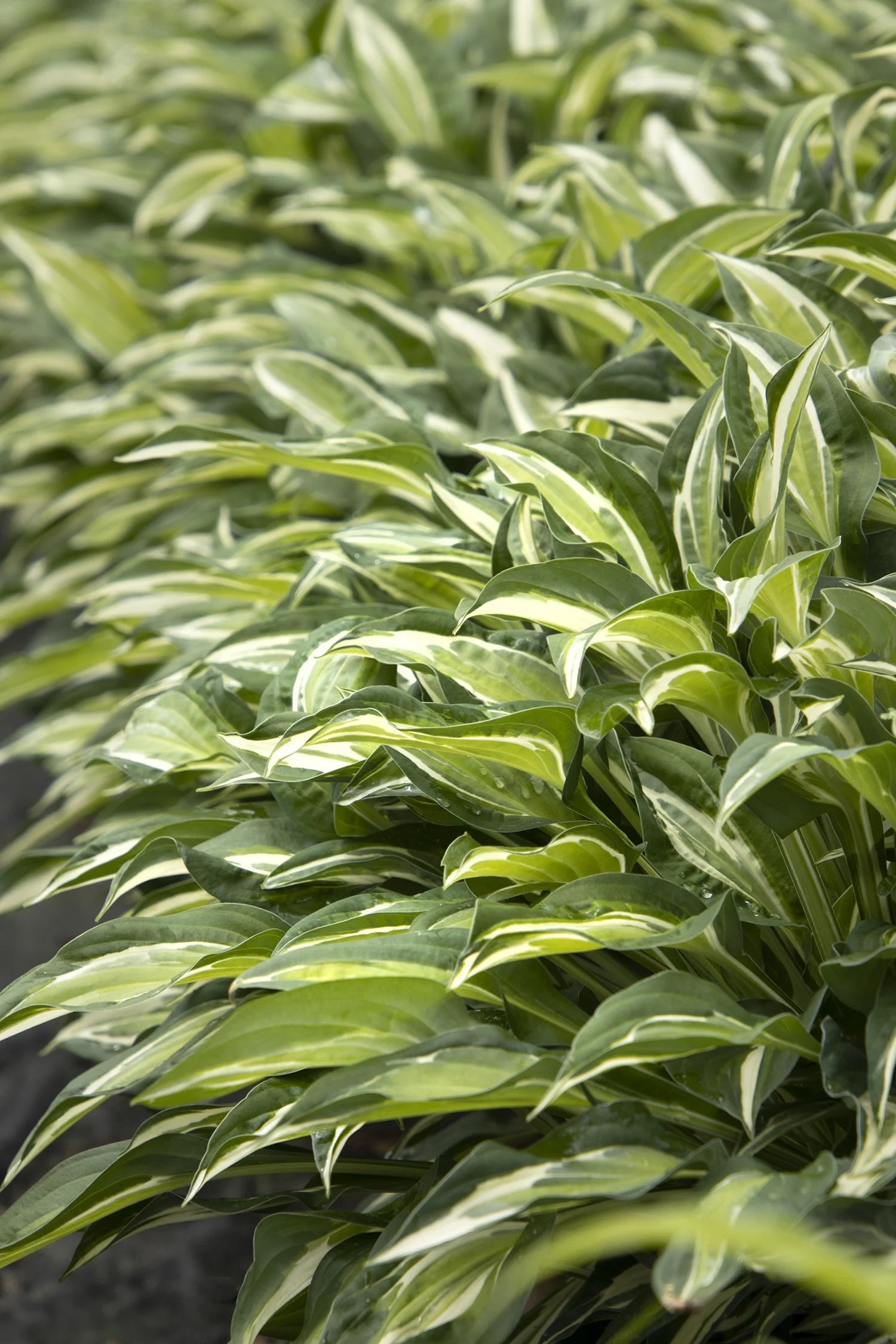 Add a touch of playful drama to your shade garden with the 'Striptease' Hosta! This fascinating variety features unique tri-colored leaves that are sure to be a conversation starter. Each broadly ovate, dark green leaf boasts a striking chartreuse-gold center, famously separated by a thin, captivating white line – a "strip" that gives this Hosta its intriguing name. This dazzling contrast creates a truly eye-catching display from spring through fall.